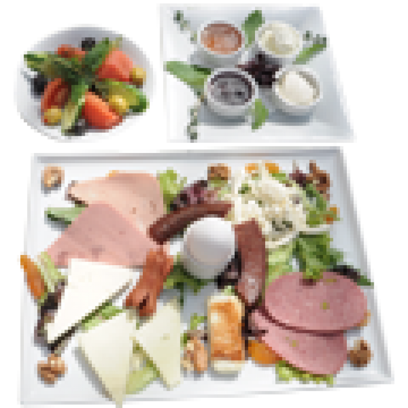 Kahvaltı Tabağı 15 TLTavuk jambon, dana jambon, salam, çeçil peyniri, kaşar peyniri, beyaz peynir, domates, salatalık, siyah zeytin, ceviz, kayısı, 1 adet haşlanmış yumurta, tereyağı,reçel, bal,