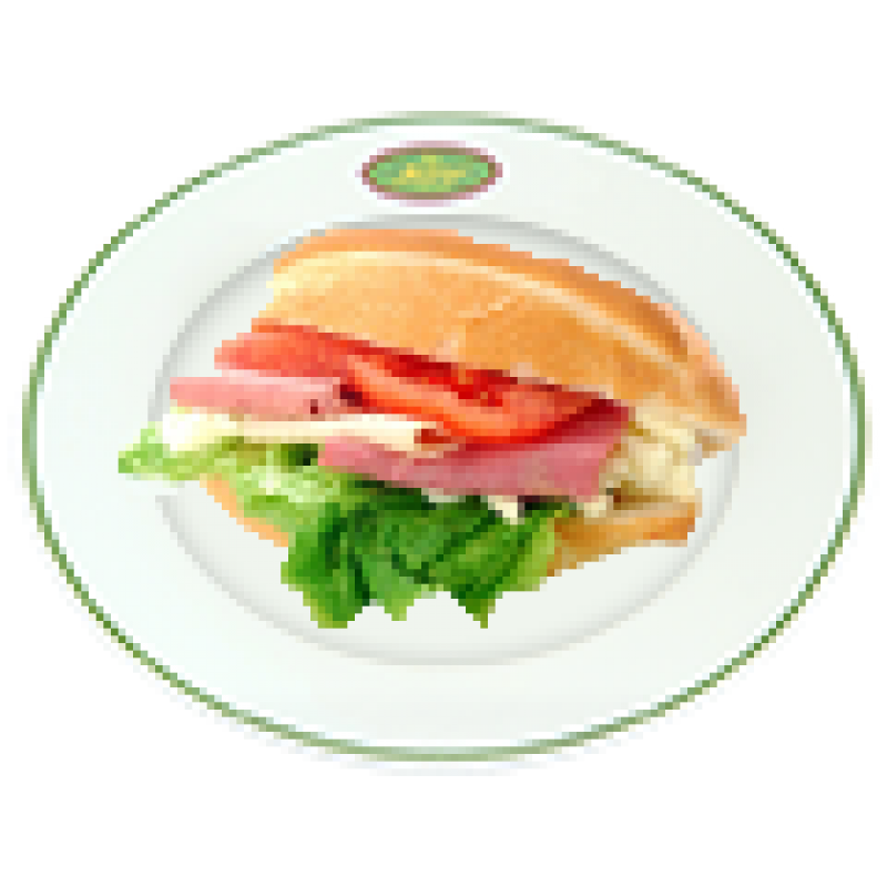 Jambon, kaşar peyniri, domates, mevsim yeşillikleri, patates tava